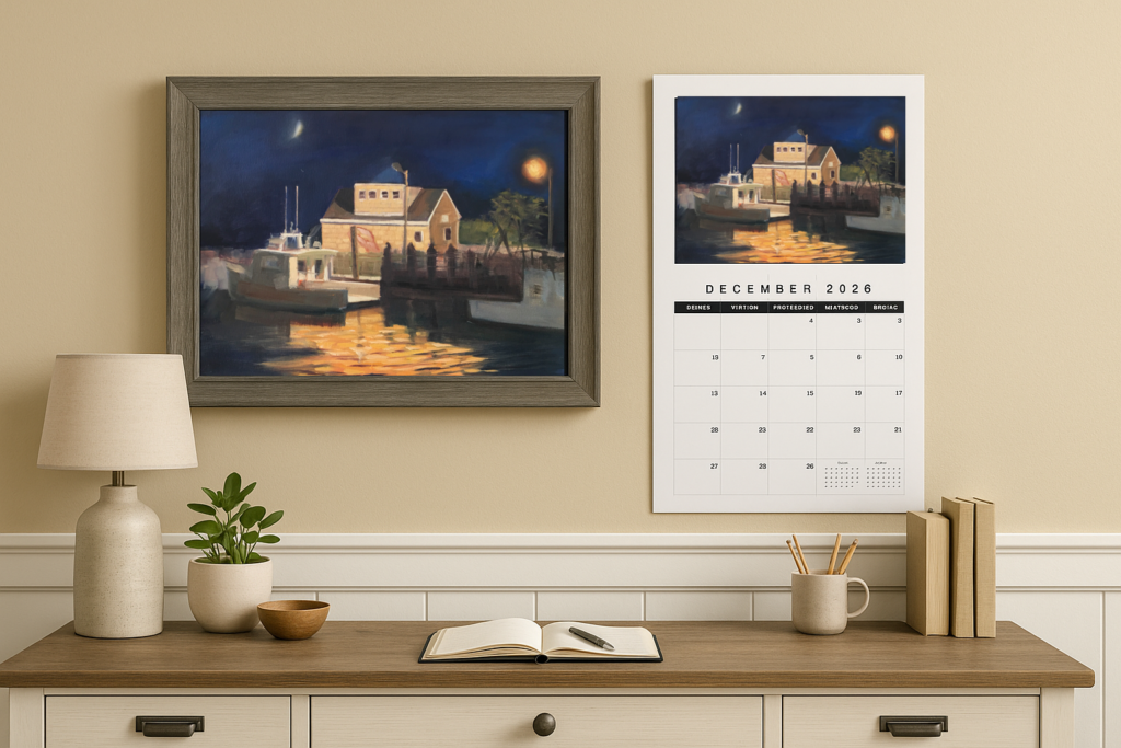 For many collectors, this calendar is more than just dates on a wall — it’s a visual connection to home. I often hear from people who grew up along the shoreline and have since moved away, telling me how these paintings bring back memories of summer days, salt air, and small-town charm. That’s why I’m thrilled to offer this year’s calendar once again — printed in a limited edition and available while supplies last.