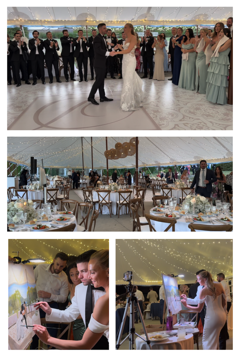 Live Wedding Painting, Molly and Adam’s First Dance, Shepherd’s Run, Kingston, RI, 24 x 36″ oil painting